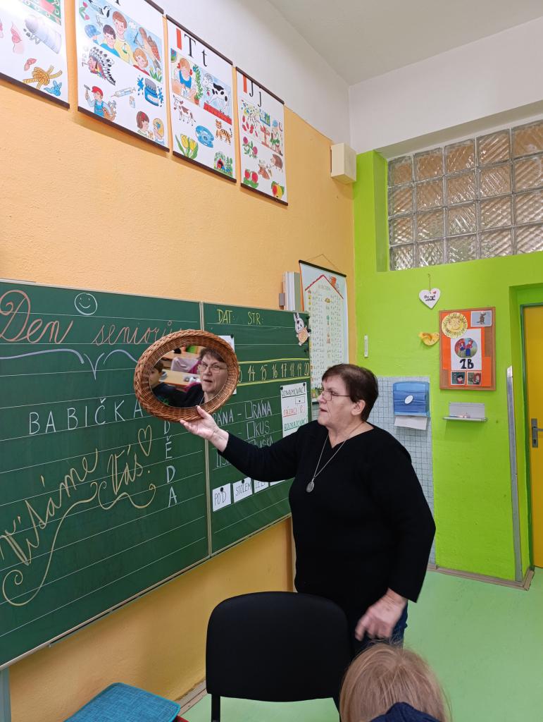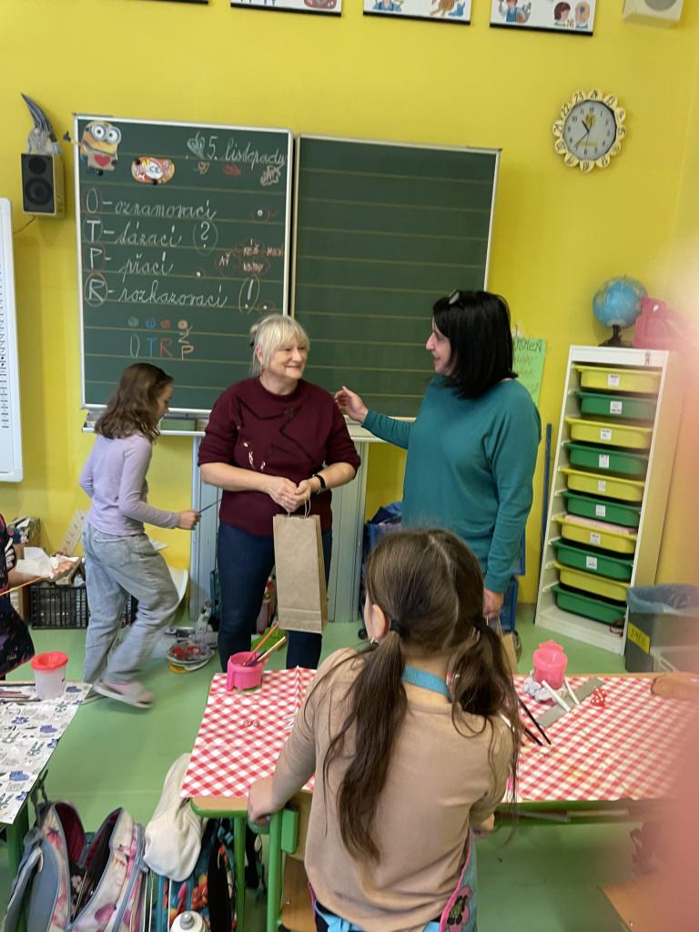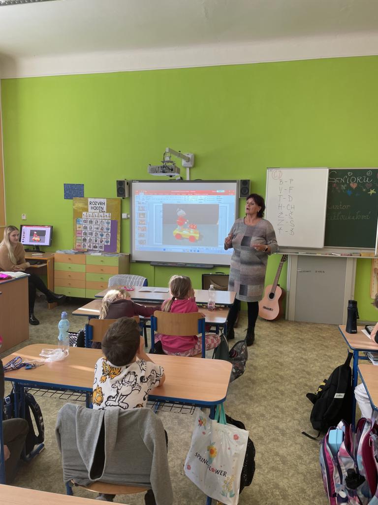Ve 2.A předvedly děti paní Jaroslavě Hrotekové, jak výborní jsou počtáři, také jí zazpívaly a společně si pak všichni vyrobili muchomůrky z přírodnin. Děti ve 2.B navštívila bývalá vedoucí potravin paní Dagmar Šrámková a téma bylo jasné – obchod kdysi a dnes, vše krásně doplněné prezentací o tom, jak to v obchodě dříve vypadalo. Pak si děti povídaly s paní Jarmilou Čechovou, jaké to bylo, když byla malá, a kladly jí všetečné otázky. Druháci z „céčka“ si připravili krásné dopisy s obrázky a vydali se do Domova pro seniory na Komenského ulici. Tamním obyvatelům zazpívali a předali dárečky, ti jim na oplátku přečetli pohádku a rozdali sladkosti.
