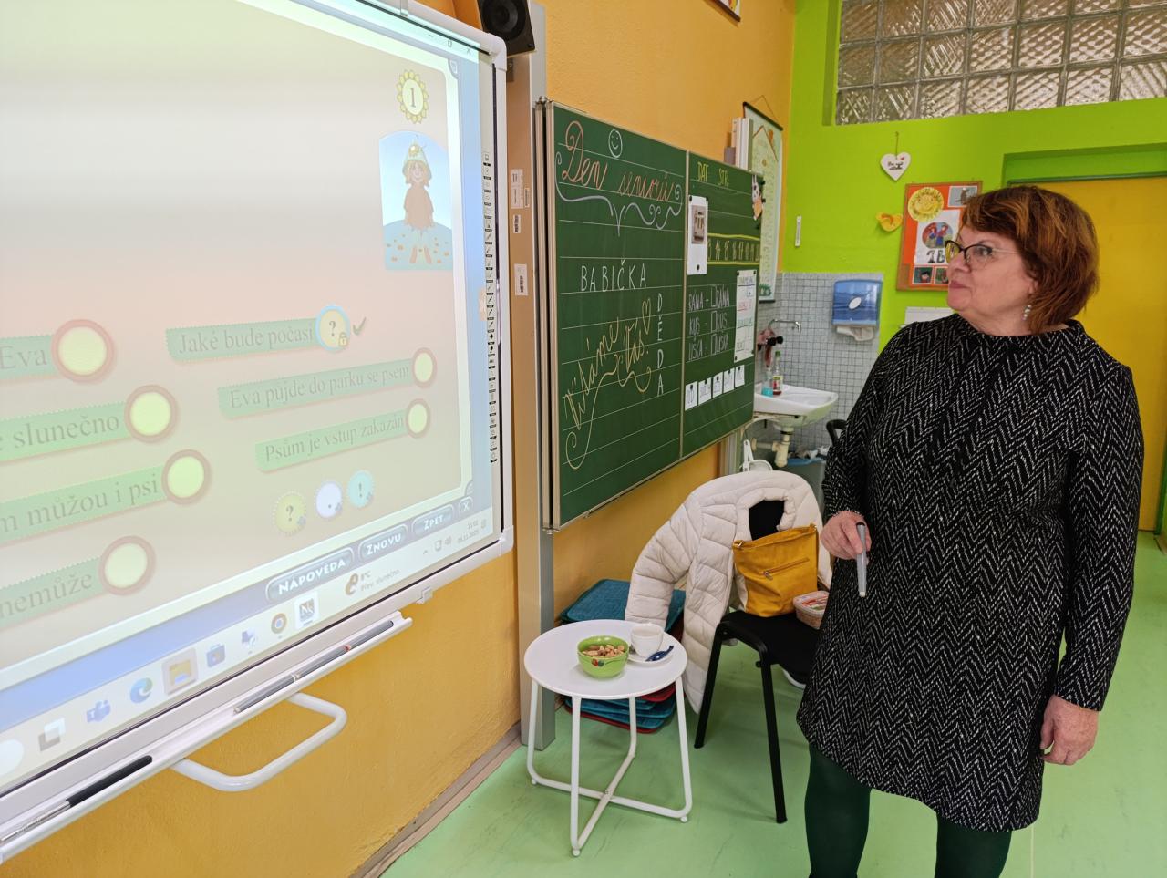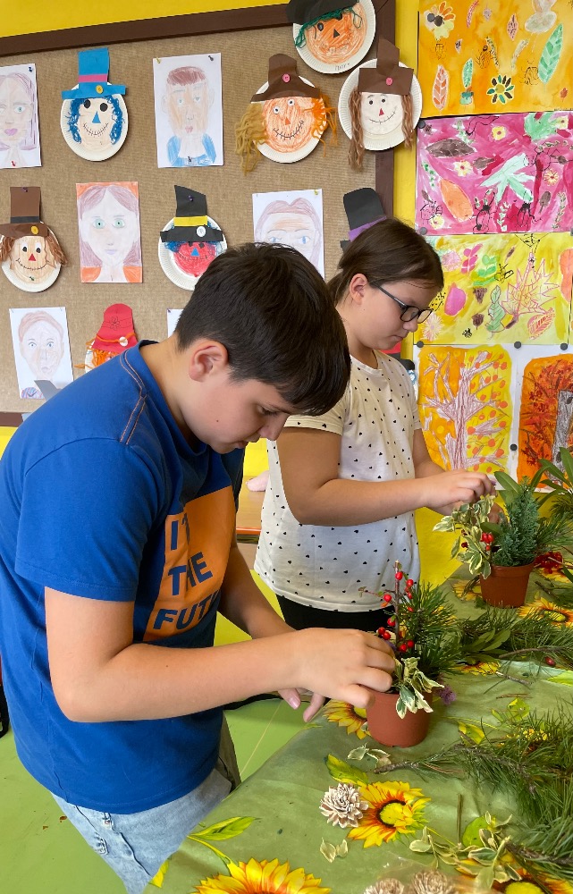 Mezi děti ze 4.A zavítala paní Alena Mařáková s paní Danuší Vychodilovou. Všichni se nejprve vzájemně představili, popovídali si a pak už se ve velmi pohodové atmosféře pustili do výroby podzimního aranžmá z přírodnin. Každý si domů odnášel nejen krásně nazdobené květináčky, ale také pěkný pocit z příjemně stráveného mezigeneračního dopoledne, ze kterého dokonce vzešel Strom přátelství a vzpomínek. Do 4.B se přišla za dětmi podívat paní Ilona Nedbalová, kterou moc zajímalo, jakým způsobem se dnešní děti ve škole učí. Čtvrťáci jí tedy předvedli práci s interaktivní tabulí a různými výukovými programy. Od vzácného hosta si pak vyslechli pohádku O veliké řepě, kterou zároveň sami sehráli jako scénku.