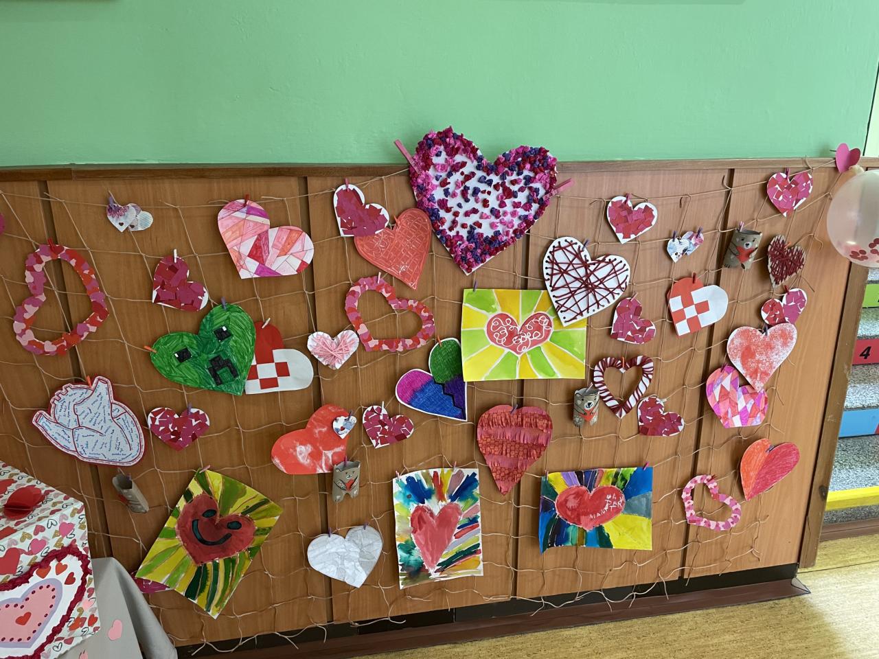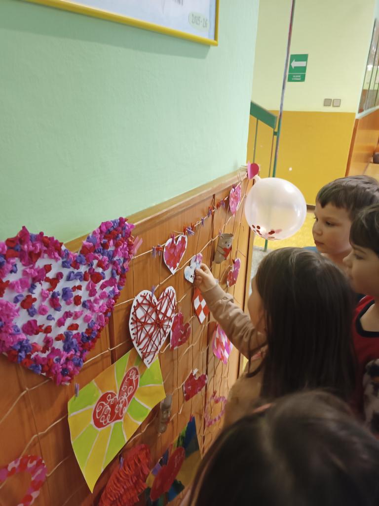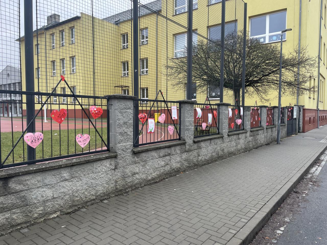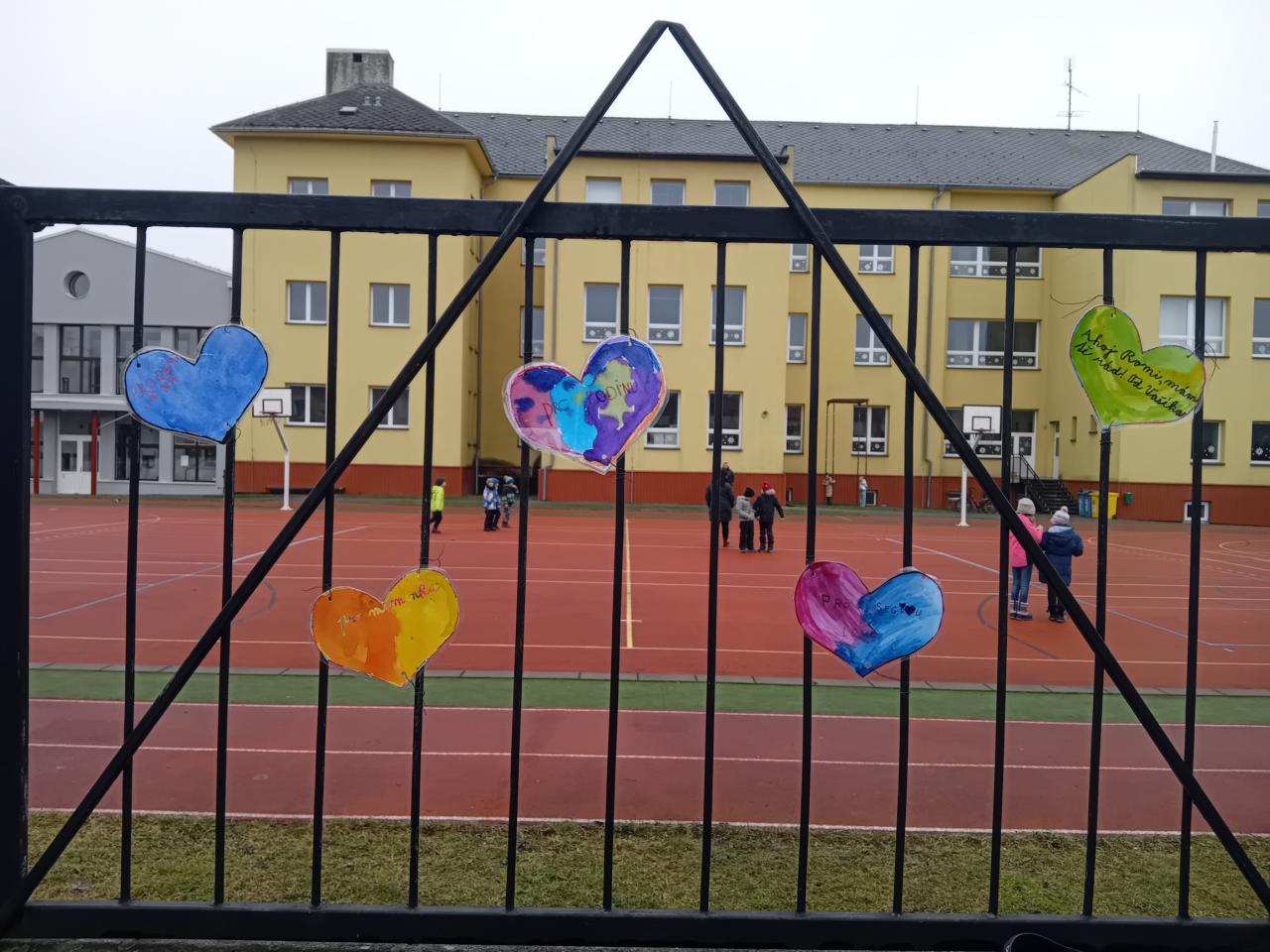 Také okolí školy jsme si společně s dětmi z MŠ Komenského vyzdobili. Plot kolem celého hřiště zkrásněl přáníčky a srdíčky, které děti samy vyrobily. Poněvadž tento rok vyšel svátek na sobotu, valentýnky roznesly naše „valentýnské pošťačky“ do tříd a sboroven až v pondělí. Své valentýnky dostaly také paní učitelky, vychovatelky, asistentky a páni učitelé! Přáníček se sešlo opravdu hodně, valentýnská krabice doslova praskala ve švech😊.