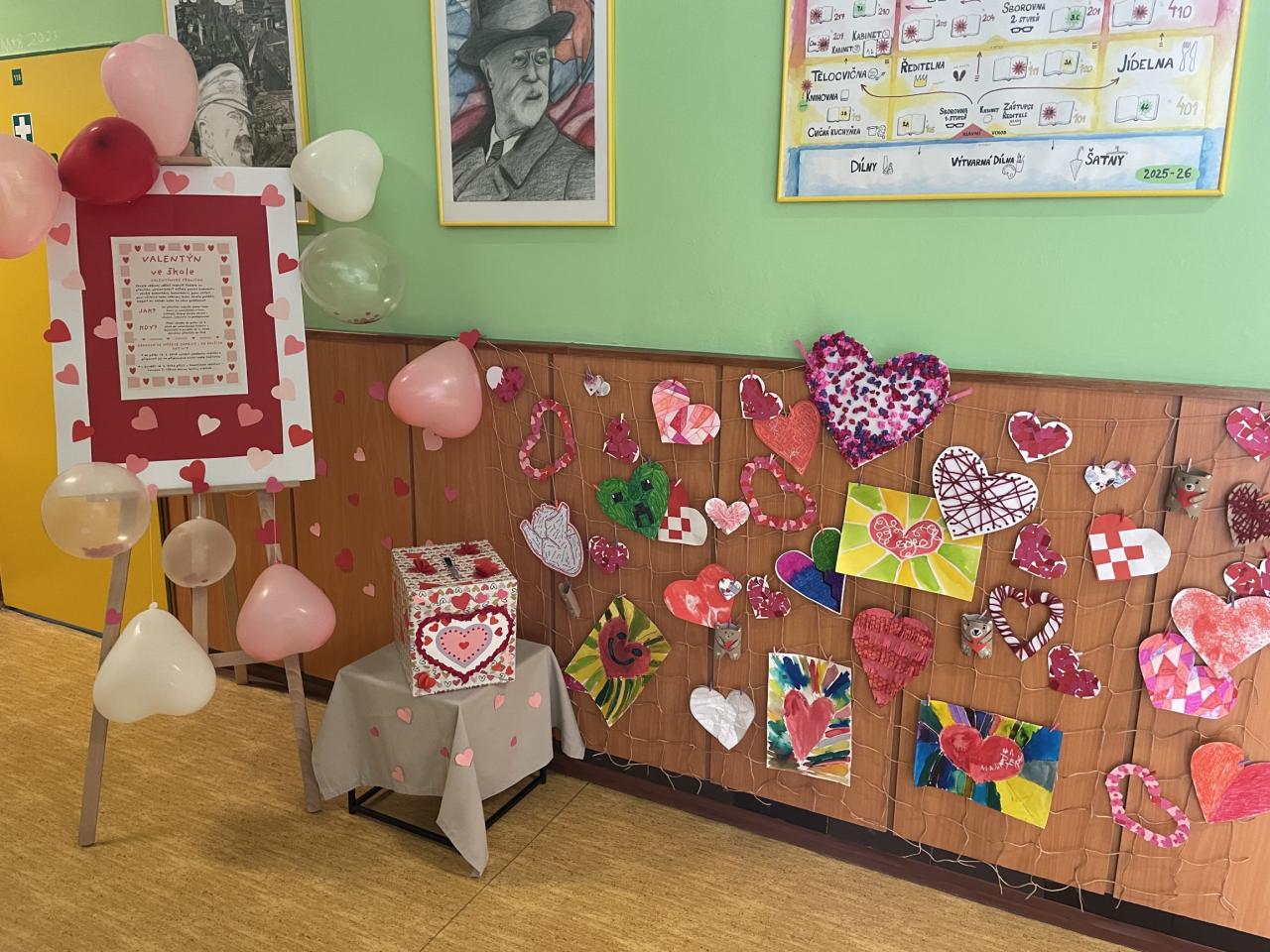 Stejně jako v loňském roce tak i letos jsme se rozhodli tento svátek náležitě oslavit. Na chodbě si každý mohl přečíst informace a zajímavosti o tomto dni, připevnit svá vlastnoručně vyrobená srdíčka a během celého předvalentýnského týdne vhazovat svá přáníčka a vzkazy do připravené valentýnské schránky.