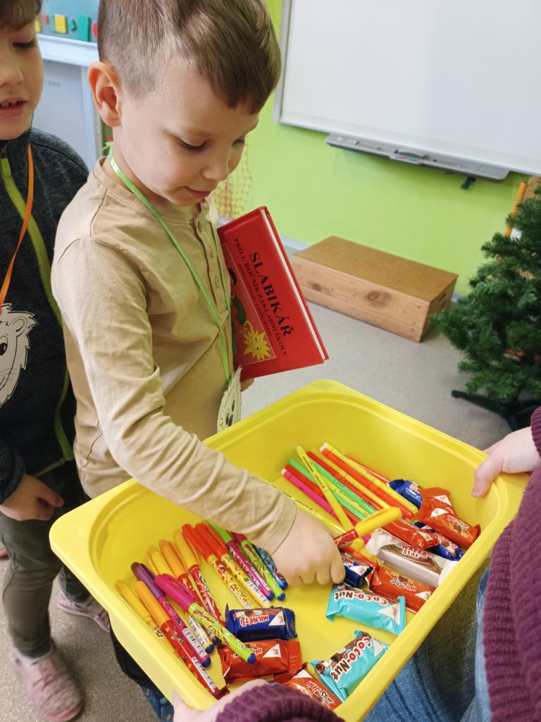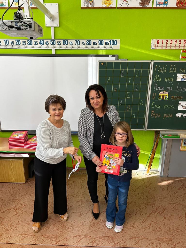 Při malé oslavě předávání slabikářů ukázali, co vše už umí – zpívali, přednášeli básničky, četli slabiky, slova, a dokonce i celé věty. A pak už se konečně dočkali! Každému pověsila paní učitelka na krk klíček, aby si mohl svůj slabikář symbolicky otevřít. Děti se na tento okamžik moc těšily, a tak hned knihou nedočkavě listovaly, prohlížely obrázky a pokoušely se i něco přečíst. Nakonec na všechny čekala ještě malá odměna – pero, zvýrazňovač a sladkost.