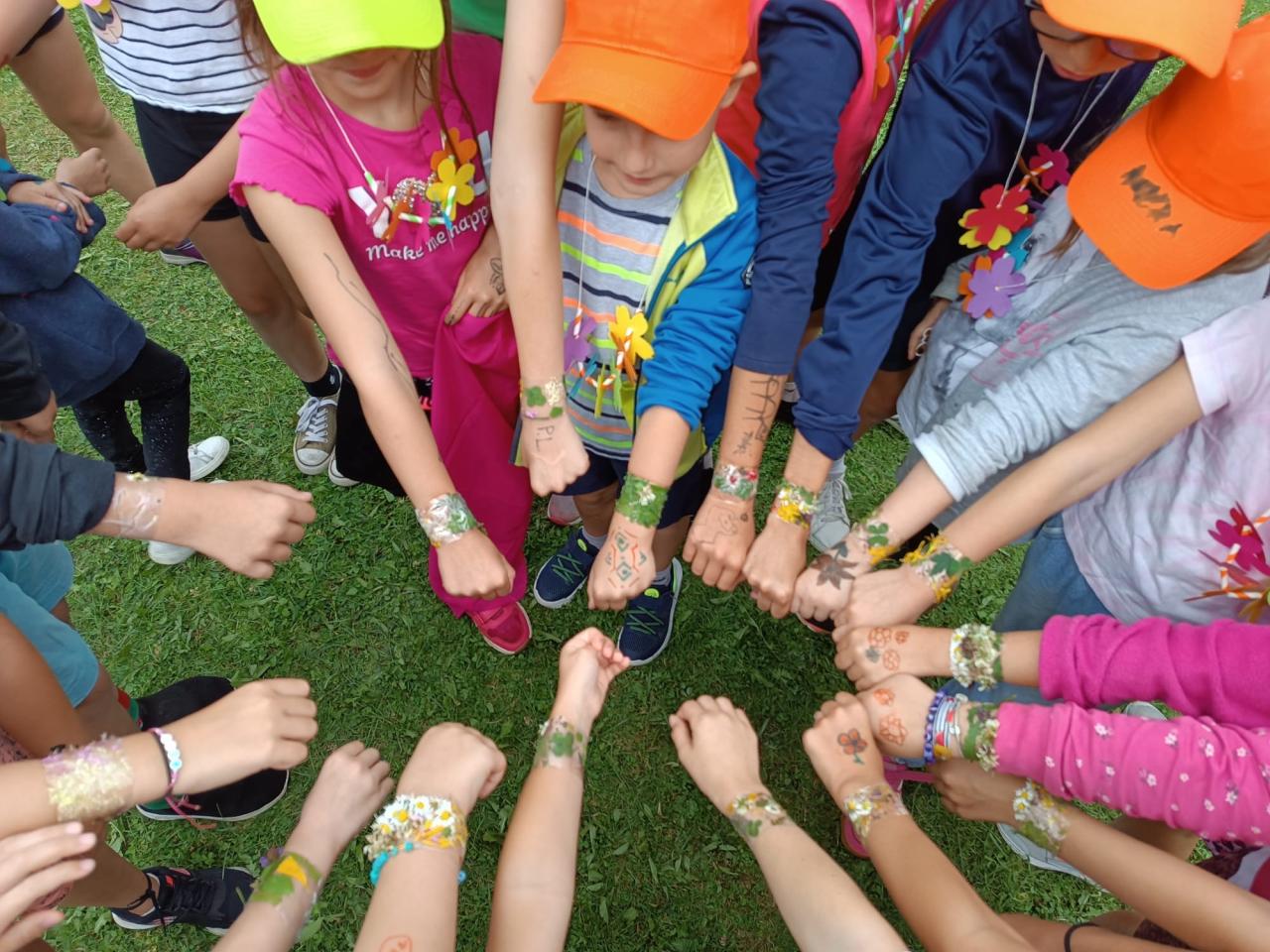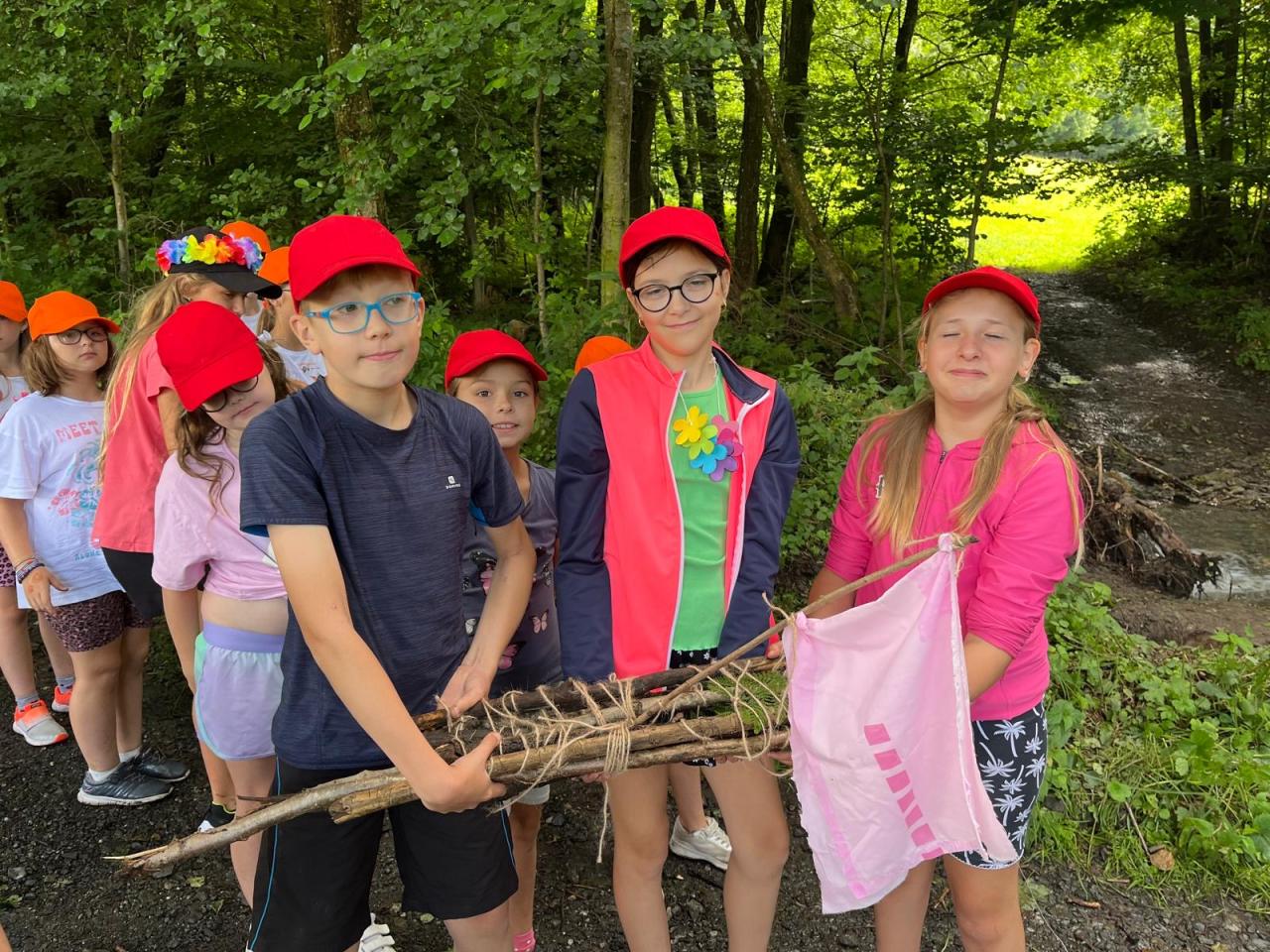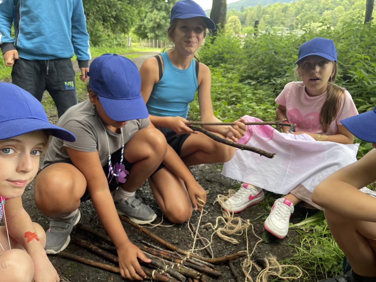 Po dobrém obědě a poledním klidu jsme nezapomněli popřát naší tábornici Lucce, která dnes slaví narozeniny, a poté jsme se už pustili do samotného plnění úkolů vedoucích k záchraně Vaiany. Po oddílech jsme se vydali do přírody a po cestě plnili různá zadání a postupně jsme také vytvořili spirálu „skoro“ ve tvaru srdce😊. Vaianě jsme také postavili několik lodiček a zkoušeli je pustit po vodě. Vedli jsme si dobře, protože téměř všechny se krásně plavily po potoce.