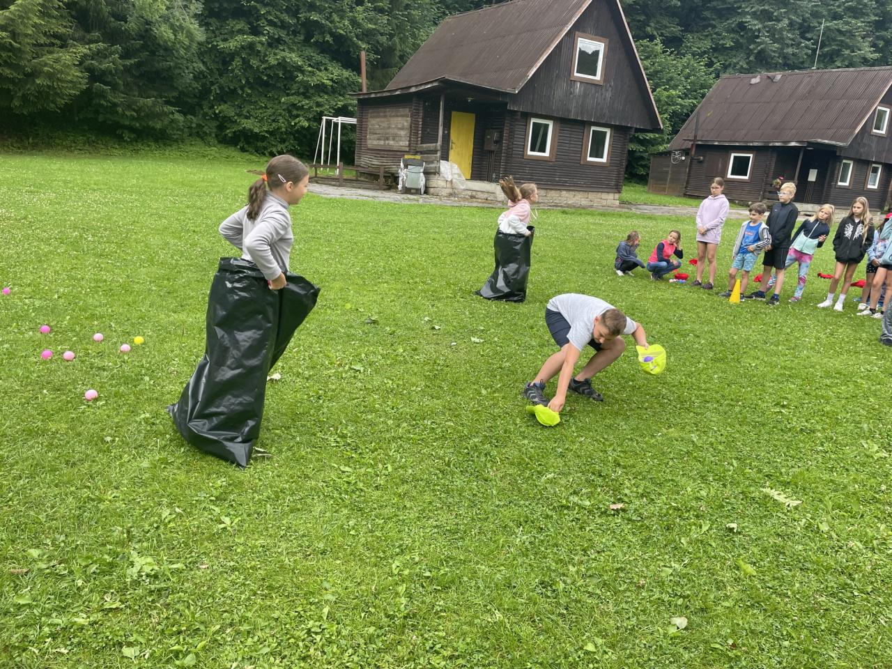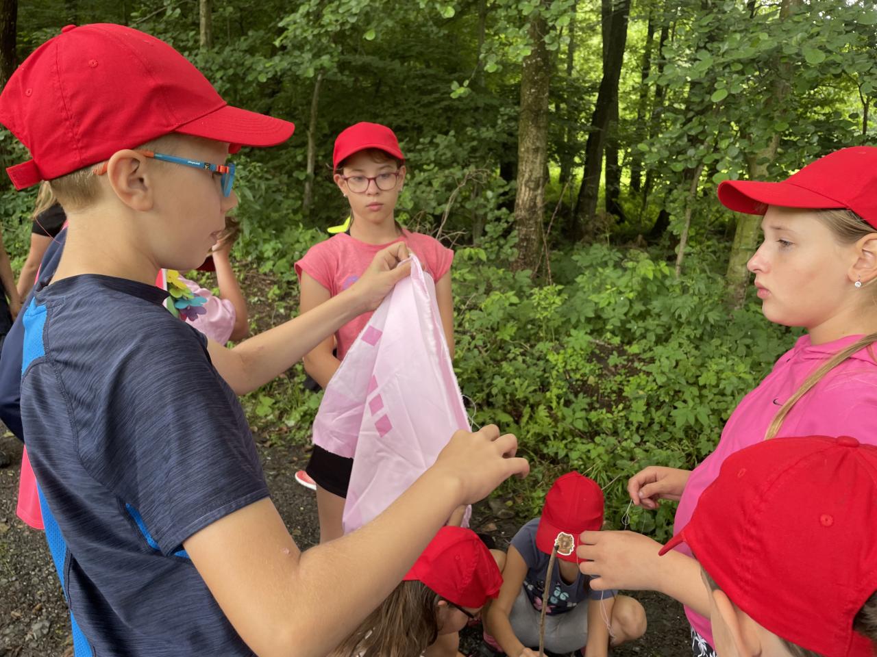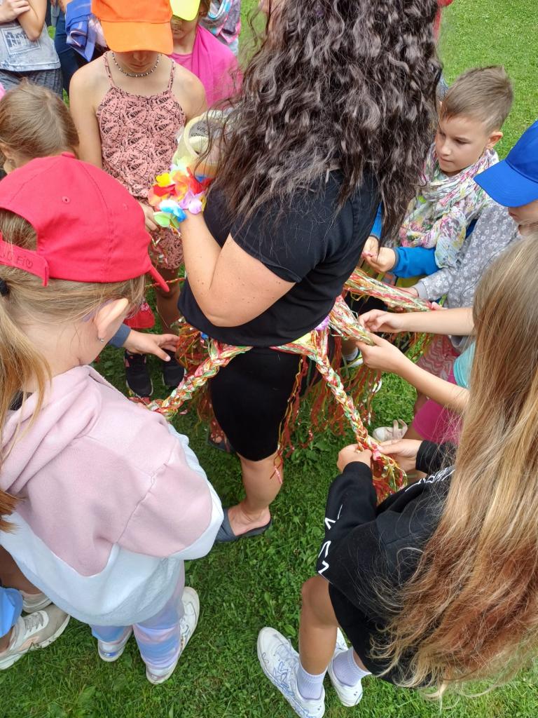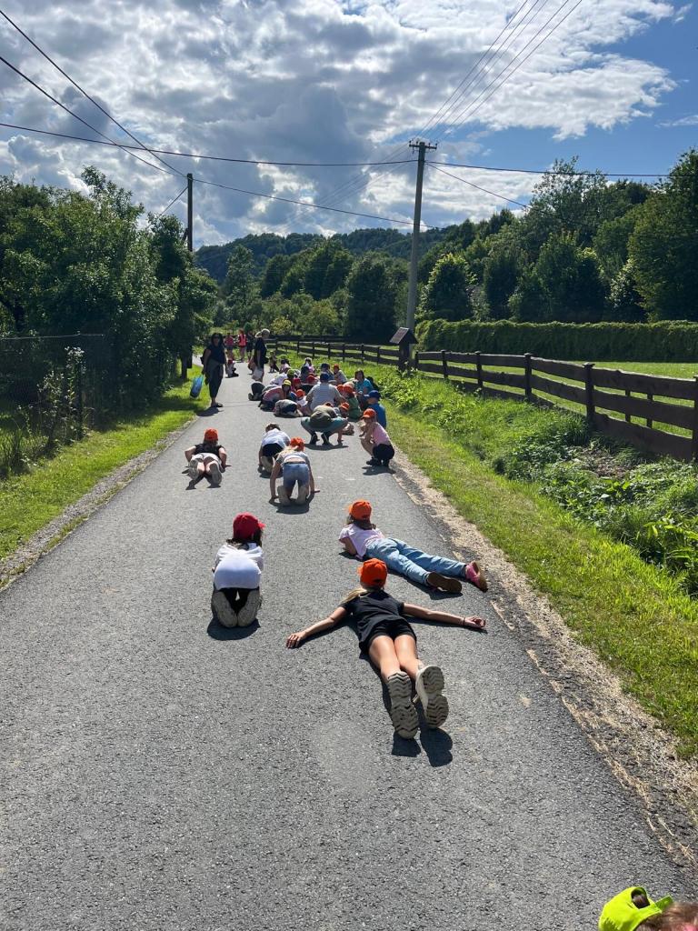 Po dobrém obědě a poledním klidu jsme nezapomněli popřát naší tábornici Lucce, která dnes slaví narozeniny, a poté jsme se už pustili do samotného plnění úkolů vedoucích k záchraně Vaiany. Po oddílech jsme se vydali do přírody a po cestě plnili různá zadání a postupně jsme také vytvořili spirálu „skoro“ ve tvaru srdce😊. Vaianě jsme také postavili několik lodiček a zkoušeli je pustit po vodě. Vedli jsme si dobře, protože téměř všechny se krásně plavily po potoce.
