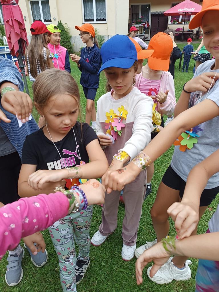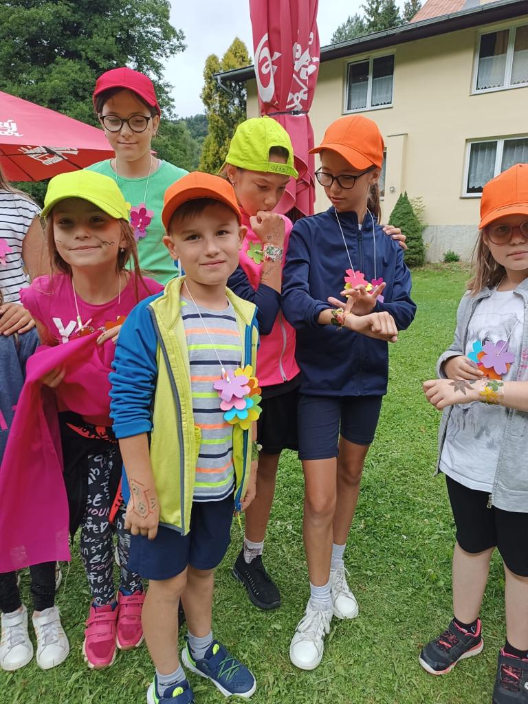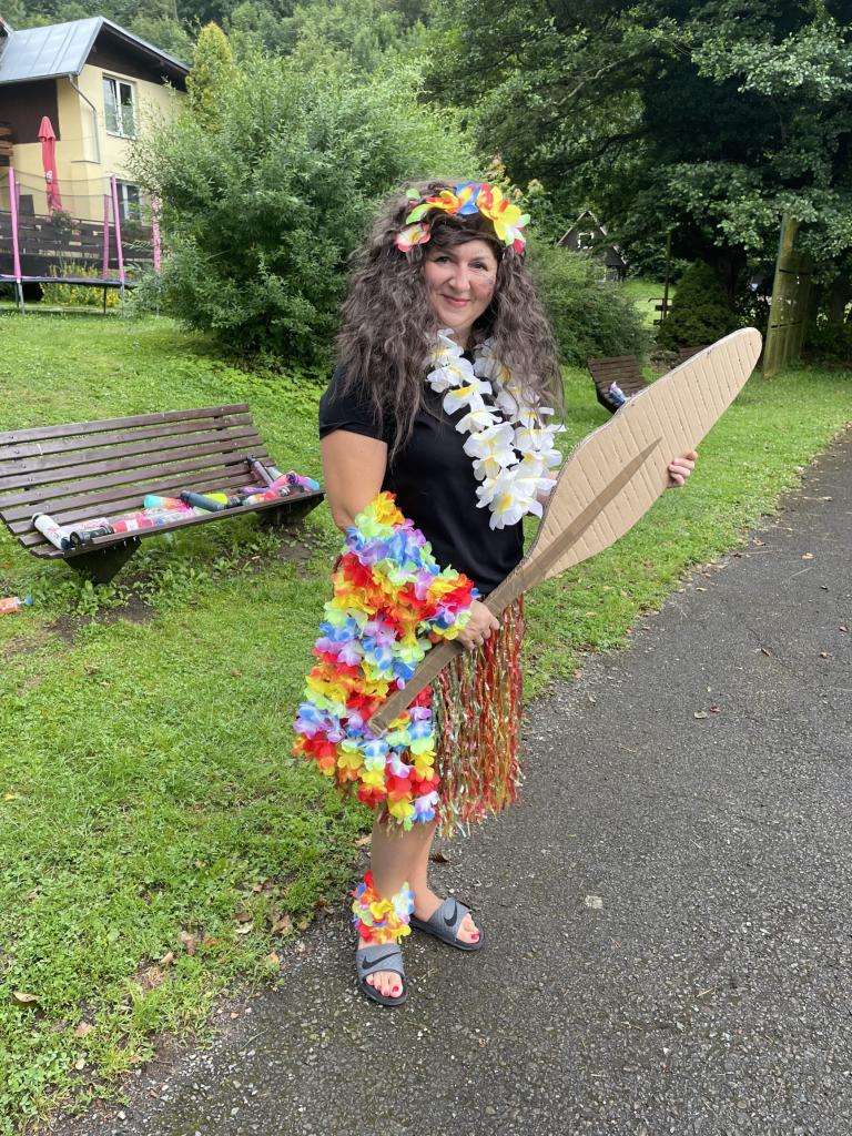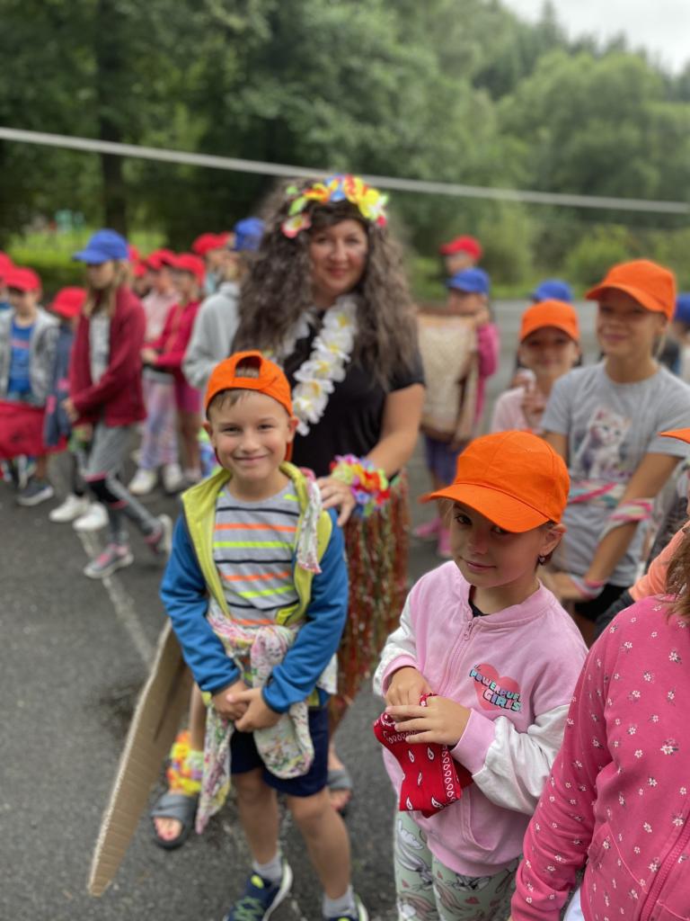 Dnes jsme se nesli na vlnách filmu Odvážná Vaiana. Hned ráno jsme se dozvěděli, že naším úkolem bude zachránit Vaianu, konkrétně nalézt její srdce Te Fiti. Na úvod jsme si zahráli hry a zasoutěžili v týmech a pak jsme se věnovali výrobě květinových věnců a náramků typických právě pro Vaianu, nacvičovali jsme tanec a tetovali se. Mohlo by se zdát, že šlo o vyloženě holčičí zábavu, ale opak je pravdou – i kluci se do všech aktivit pustili s velkým elánem a nutno říct, že se jim opravdu dařilo.