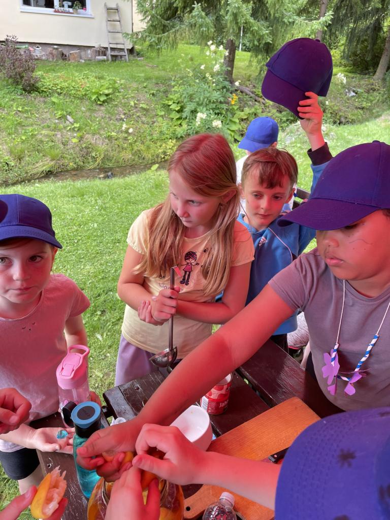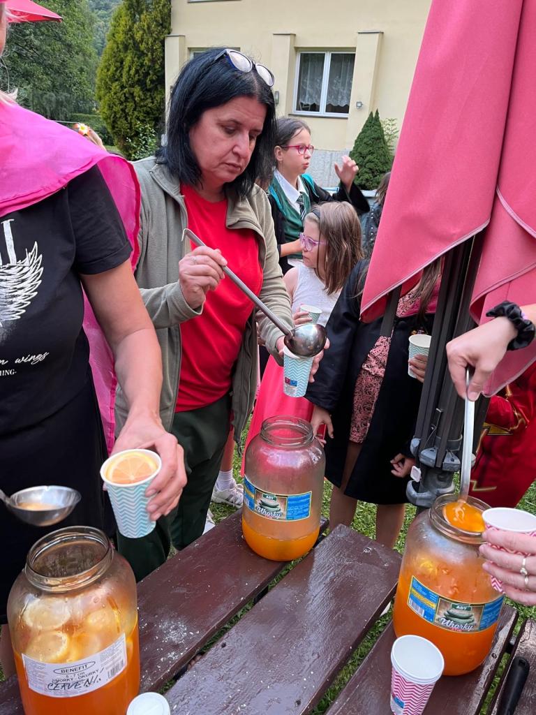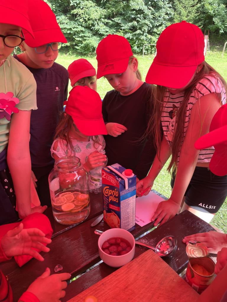 A protože nás večer čekala diskotéka, připravili jsme si ještě před večeří lahodné drinky. Pak už následovalo vyhodnocení celotáborové soutěže a očekávaná diskotéka, na kterou jsme se moc těšili.