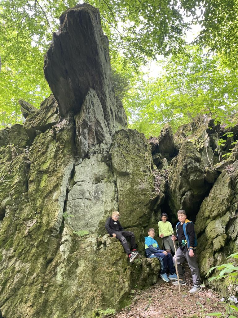 Po příchodu na Rabštejn jsme si prohlédli zříceninu hradu, i když jsme měli možnost vidět pouze její spodní část. Poté jsme měli volný čas, který jsme využili k různým aktivitám, jako byl fotbal, přehazovaná a slackline.