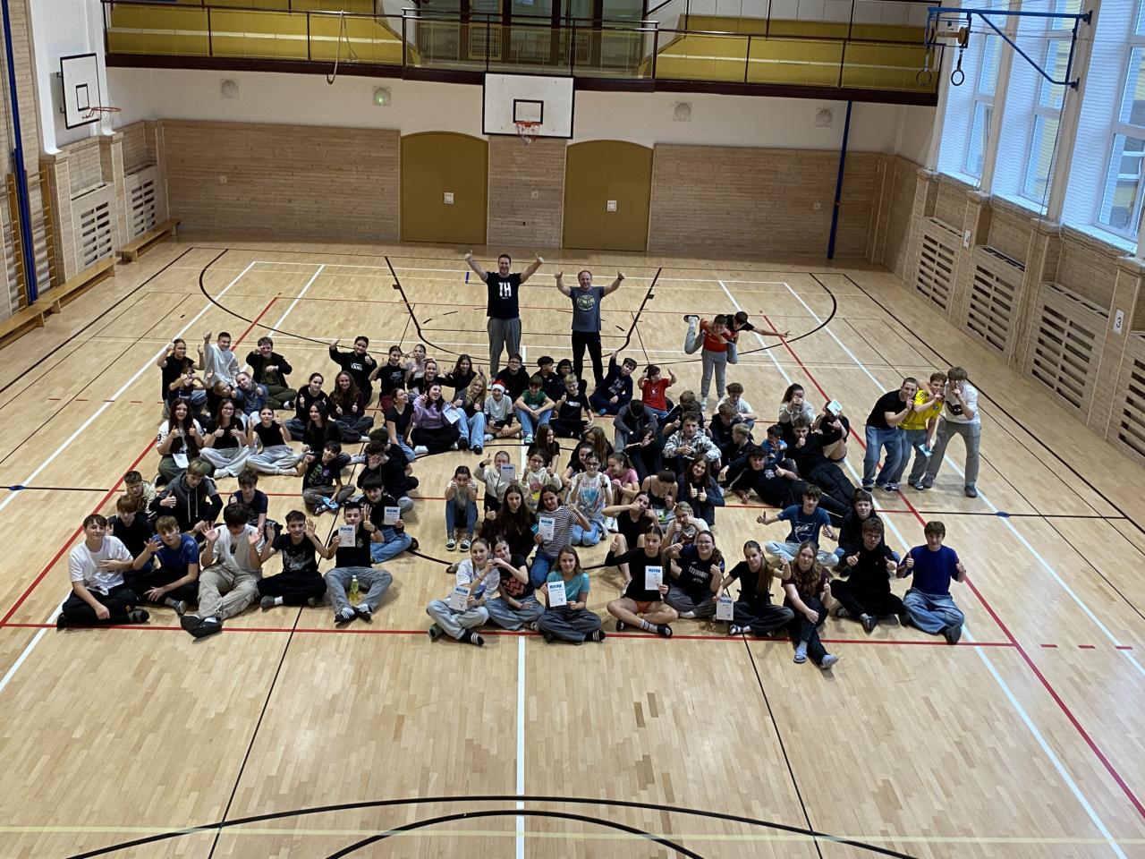 Pondělí posledního předvánočního týdne patřilo již tradičnímu vánočnímu turnaji v přehazované, kterého se zúčastnily týmy složené vždy ze dvou chlapců a dvou dívek ze stejné třídy. Byly rozlosovány dvě kategorie 6. a 7. třídy a 8. a 9. třídy. Každý tým si musel zvolit originální jméno, takže jsme byli svědky zajímavých zápasů, kdy se střetli např. Banáni proti Hrošíkům, Kebabáci proti Atlasům, Banda banánků proti Legendárním jablíčkům atd. Zápasy byly kolikrát napínavé, některé velice vyrovnané a někdy byly i hodně emotivní. Kategorii 6. a 7. tříd ovládl tým ze 7.B Banda banánků a kategorii 8. a 9. tříd ovládl tým Brumíků z 9.B. Vítězům gratulujeme a všem děkujeme, že si ještě před Vánoci přišli zasportovat.
