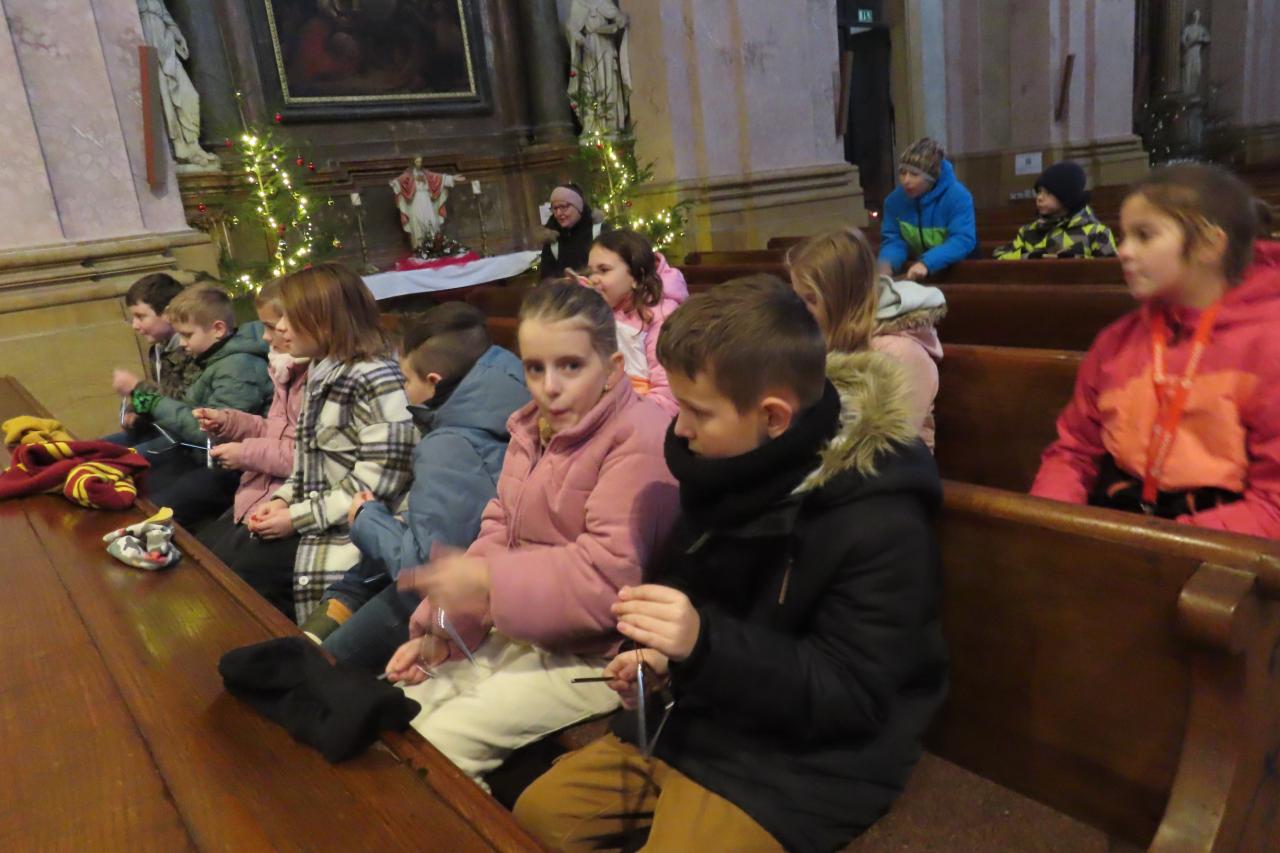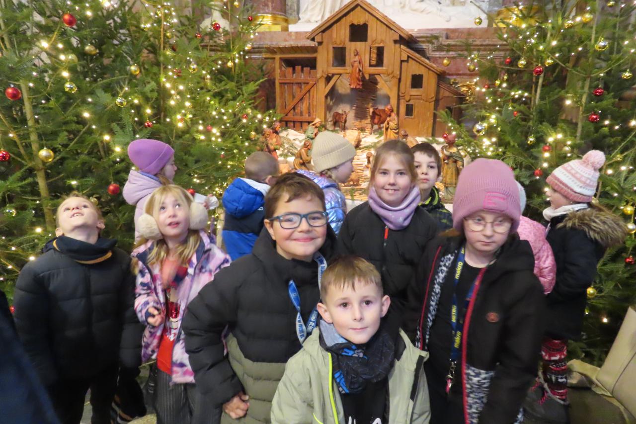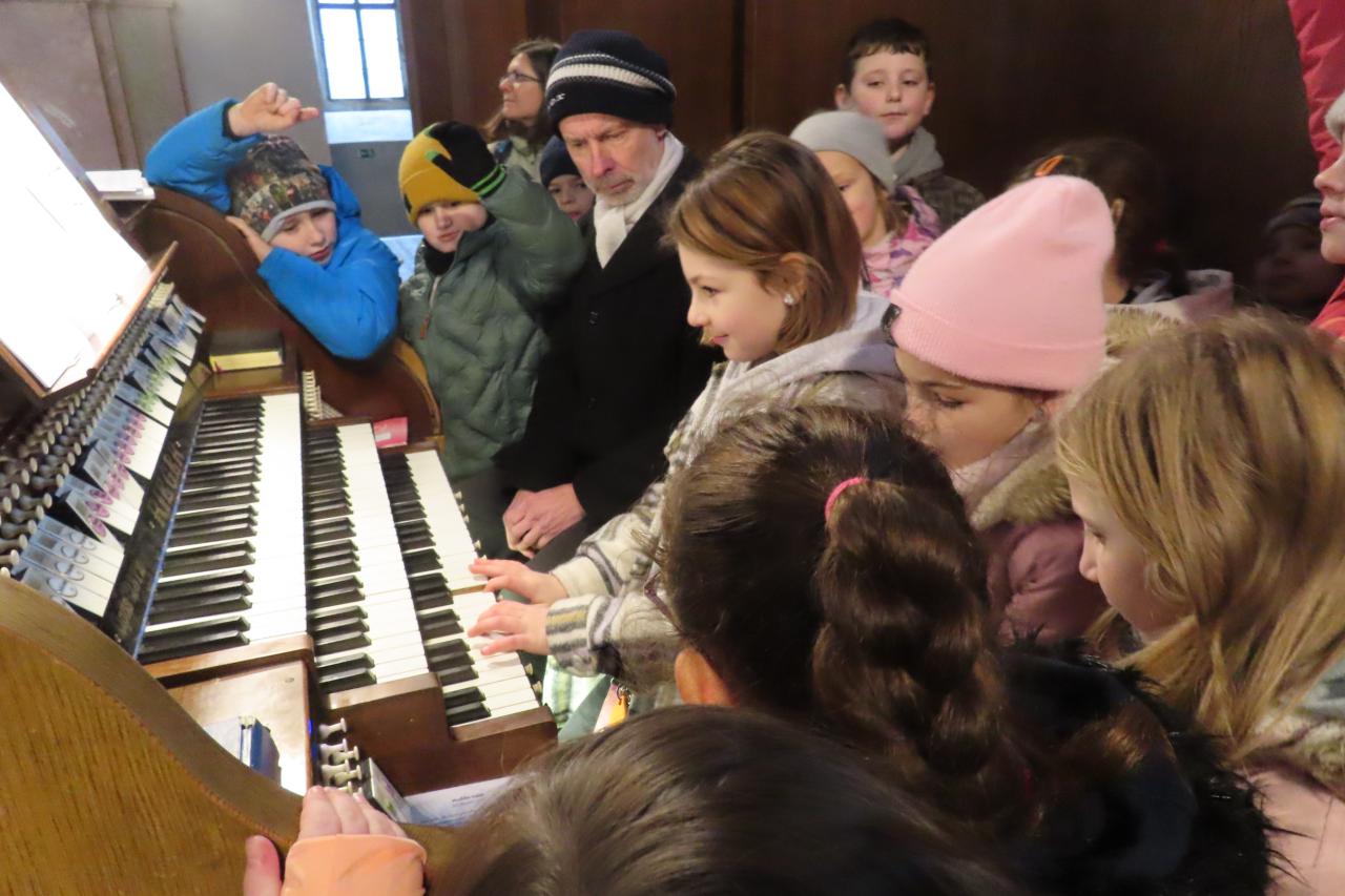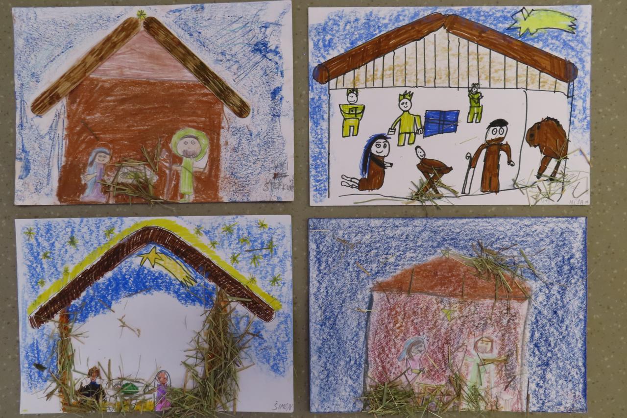 Třeťáci z áčka ozdobili stromeček se jmenovkou naší školy, tvořili dřevěné ozdoby na společný strom přání, vyzkoušeli si hru na varhany a společně si s doprovodem nástrojů zazpívali koledy u betléma.