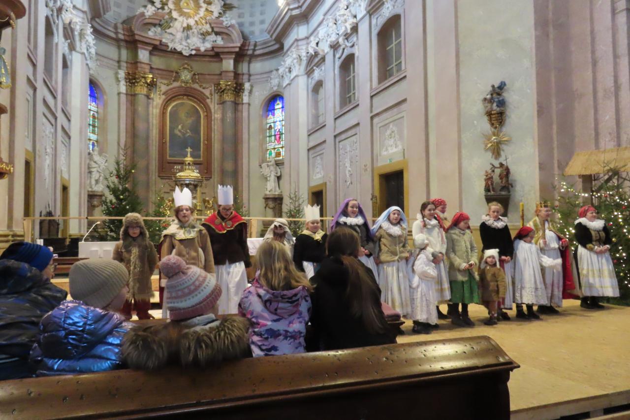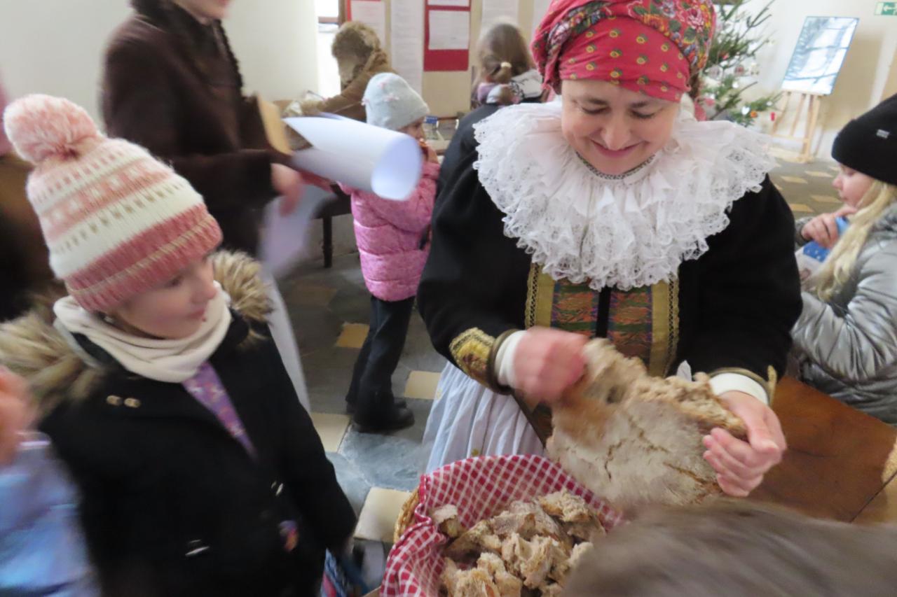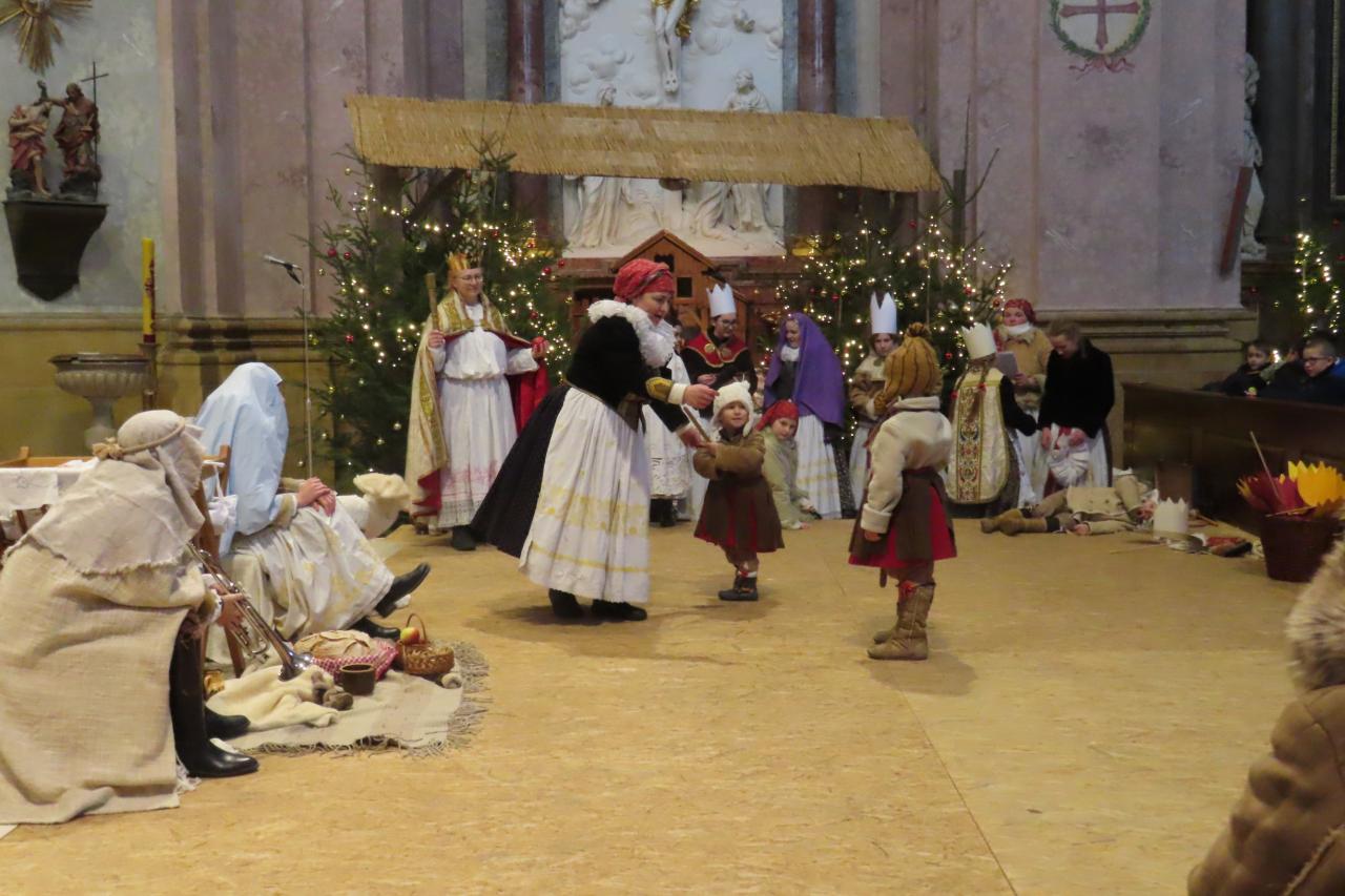 Třetí cé po nazdobení našeho stromečku v kostele zhlédla kouzelné divadelní vystoupení v podání dvou desítek malých i větších herců a tanečníků pod vedením paní Lenky Kořenkové. V souboru vystupovali i dva naši žáci. Vánoční příběh, který nám zahráli, vzbudil v dětech spoustu otázek, na které jim vedoucí souboru Hagnózek mile odpovídala. Děti byly překvapeny, jak byly štědře odměněny. Místo toho, aby ony platily vstupné za program a divadlo, ještě dostaly na cestu kus čerstvého kváskového chleba a vánočku.