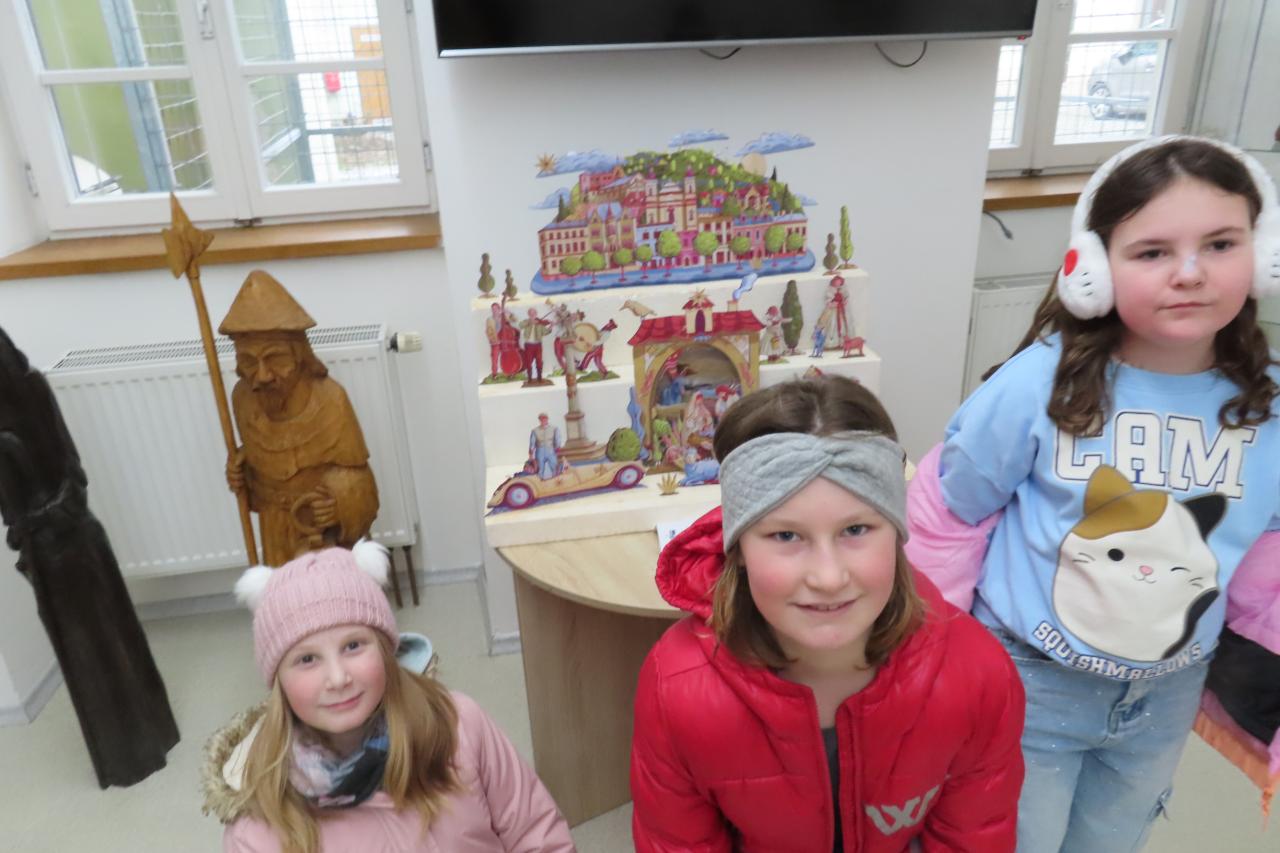 A protože ve výtvarce tato třída také vyráběla betlémy, šli jsme se cestou podívat i do informačního centra, jak vytvořil náš Šternberský betlém Vincent Chignier, malíř původem z Francie.