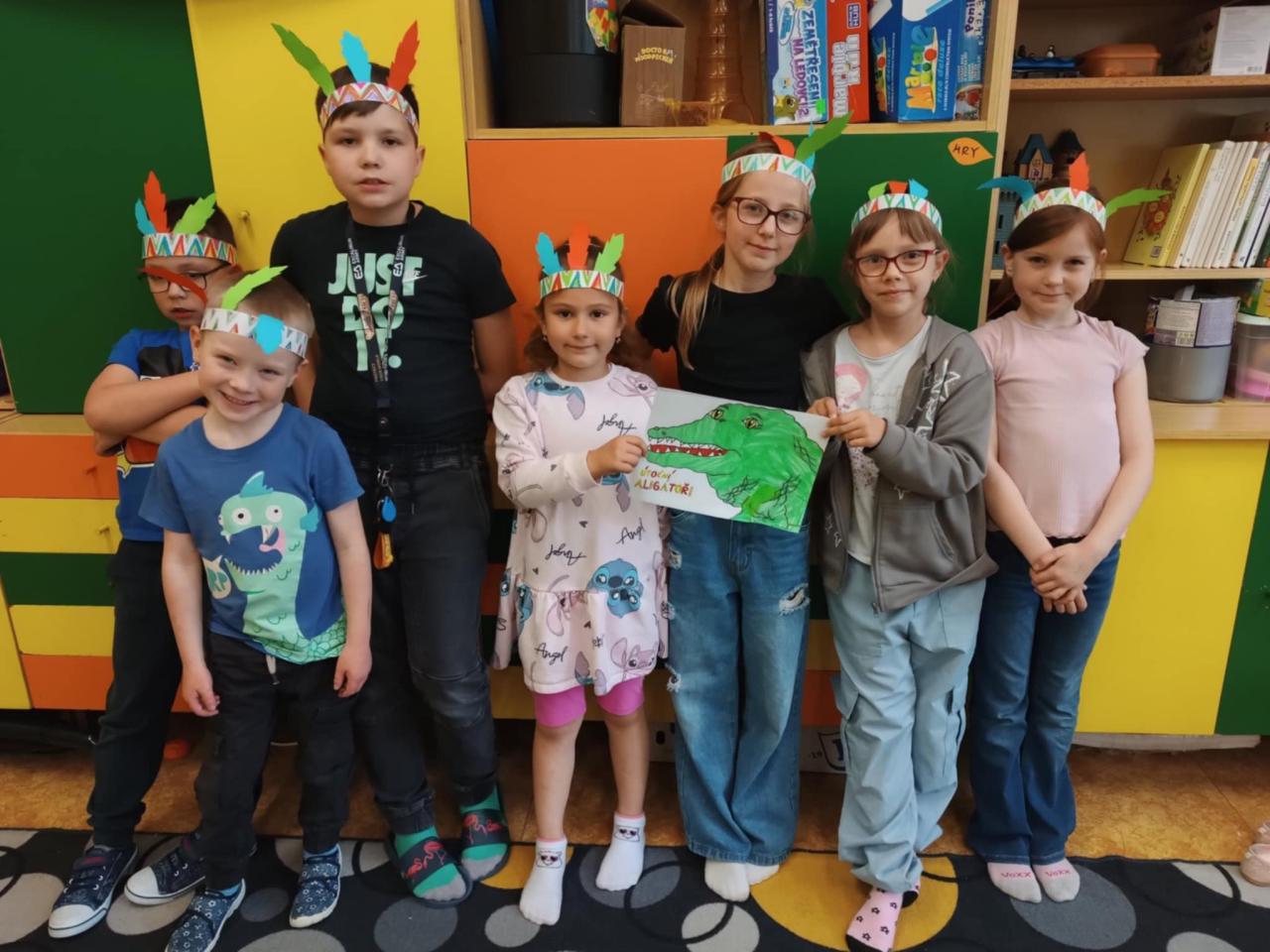 V polovině měsíce jsme se začali věnovat družinovému projektu Cesta kolem světa. Naším světadílem je Amerika. Společně jsme prozkoumali mapu severní i jižní Ameriky, povídali si o indiánech a také jsme si vyrobily indiánské čelenky do svého kmene.
