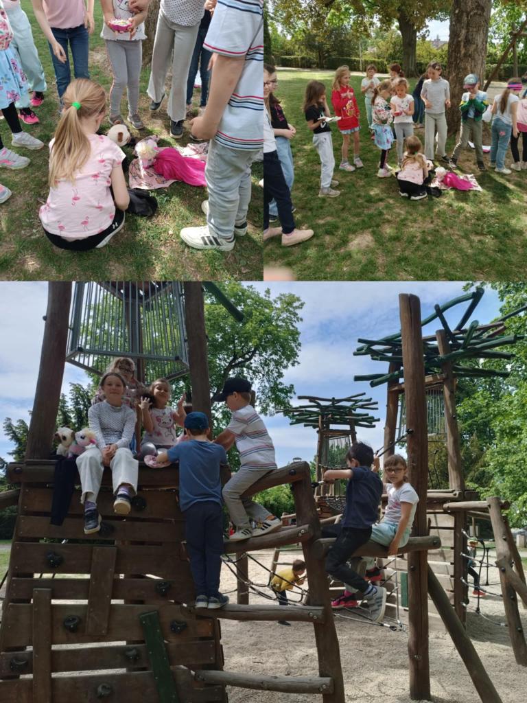 Protože nám počasí přálo, užívali jsme procházky na sluníčku i pobyt v parku a na hřištích, kde jsme hráli různé míčové a pohybové hry.