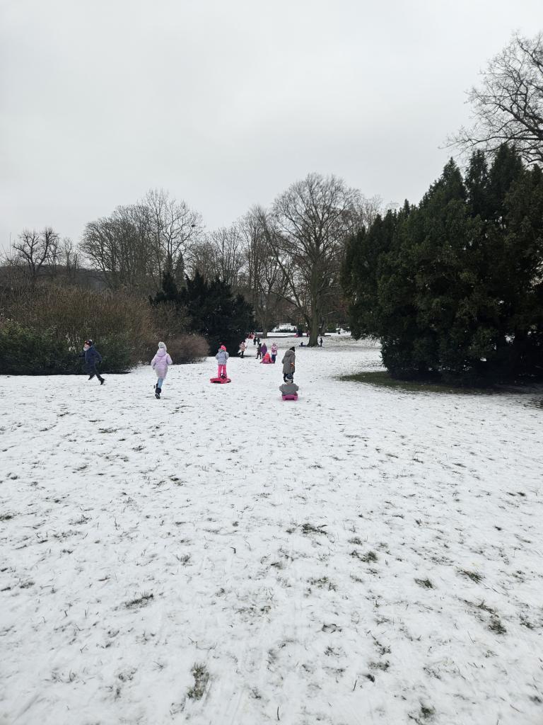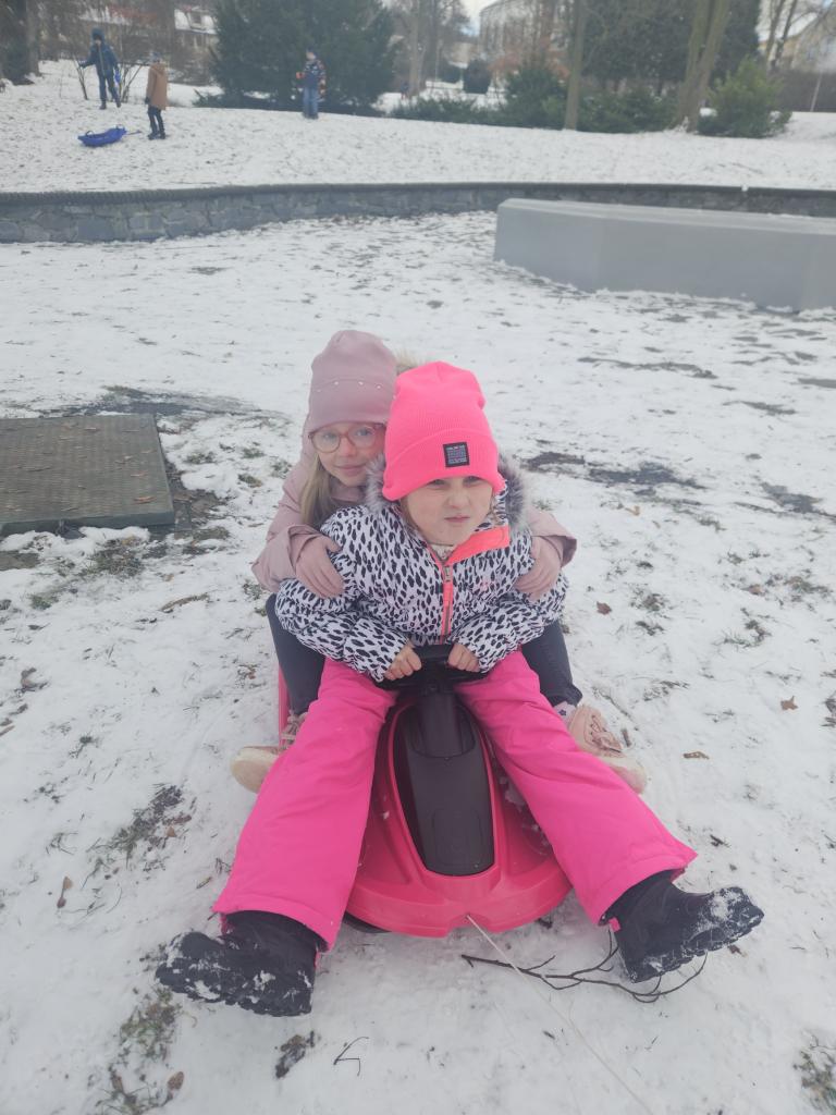 Kromě tvoření jsme trávili spoustu času venku. Zima nám přinesla sníh a ten jsme si moc užili. Bobovali jsme, stavěli sněhuláky a užívali jsme si zimní radovánky.