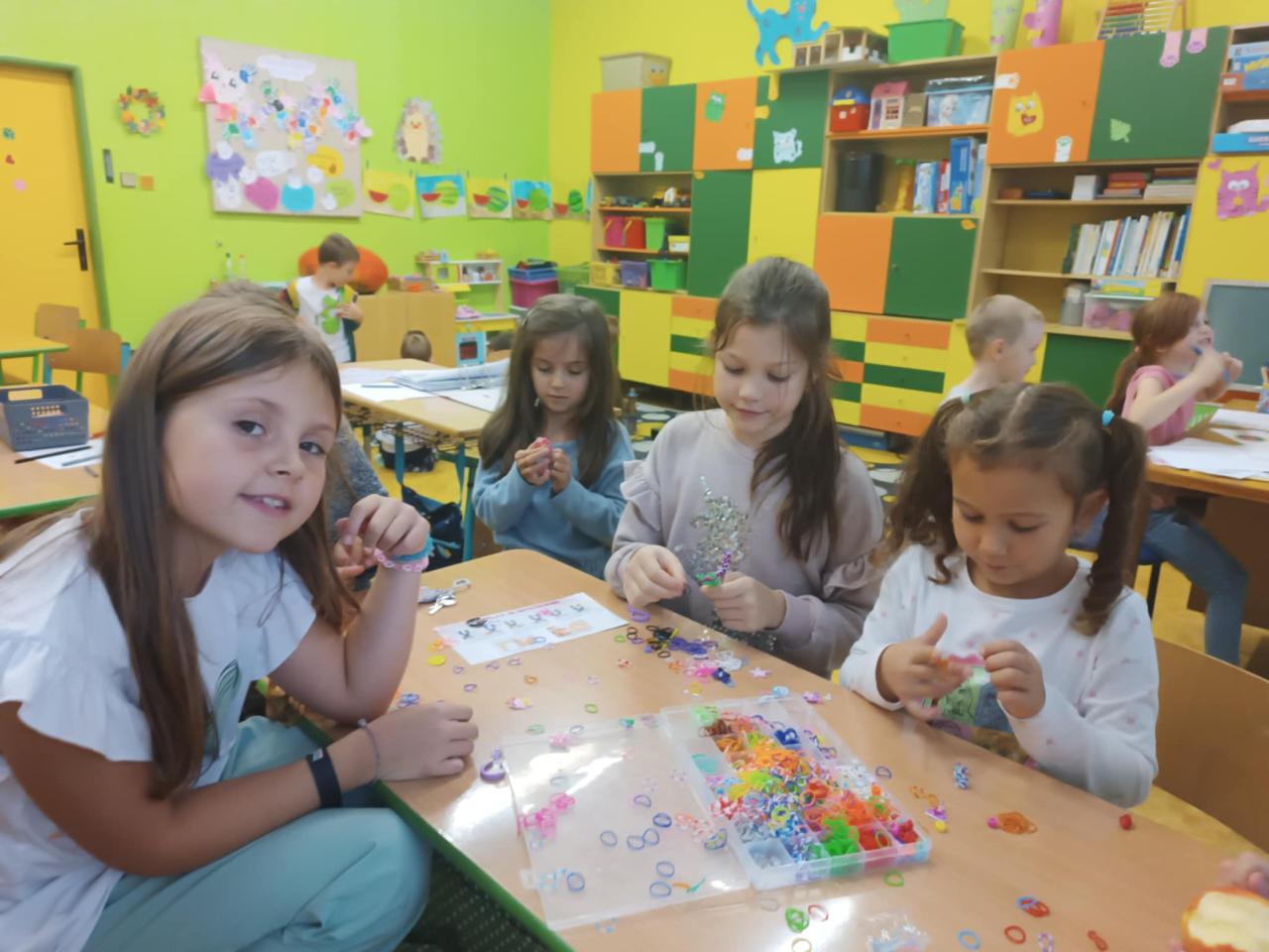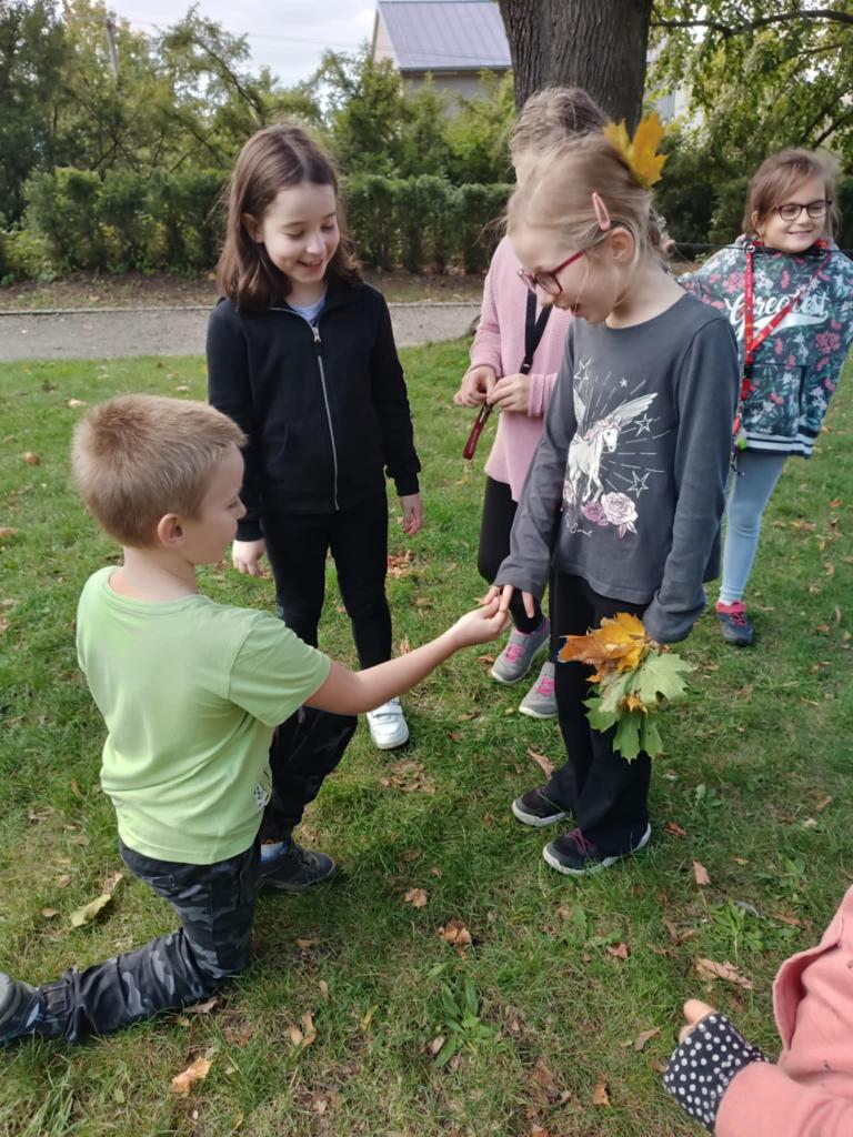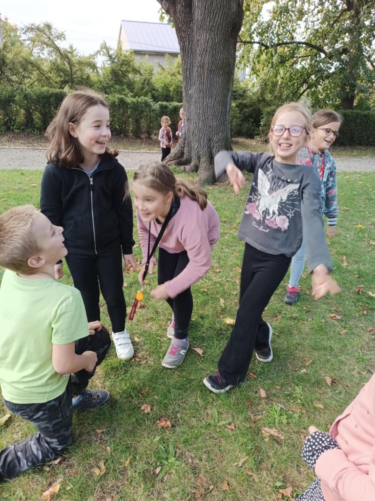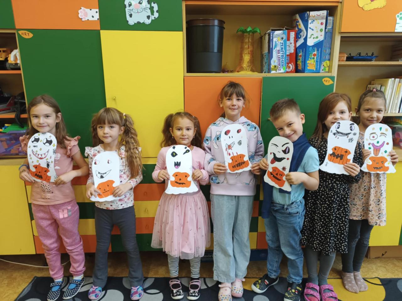 Říjen jsme začali pohádkou „ O makové panence“, tvořili jsme náramky z gumiček.Protože bylo slunečné počasí chodili jsme na procházky na kapličku, do parku a taky jsme postavili domečky pro skřítky v lese. Společně s ostatními družinami jsme oslavili Světový den stromů a to projektovým dnem v parku.Užili jsme si spoustu legrace a zábavy při Halloweenském reji v tělocvičně.